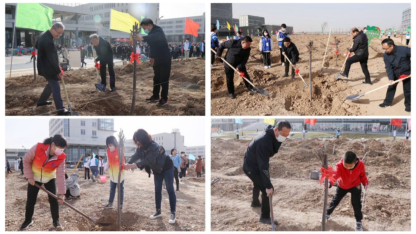 阳春三月,草长莺飞,植树增绿正当时。3月12日,在植树节到来之际,我校在经开校区开展“青绿经开 情满工院”生态文明实践活动,邀请学校老书记李景兰、詹保安,老校长高维涛、赵嘉骏与全体校领导、处科级干部以及师生代表等几代工院人齐聚经开,共同植树、寄情、铭志,让红色基因与盎然春意交相辉映,劳动教育与精神涵养相互融通。活动由党委副书记贺天柱主持。