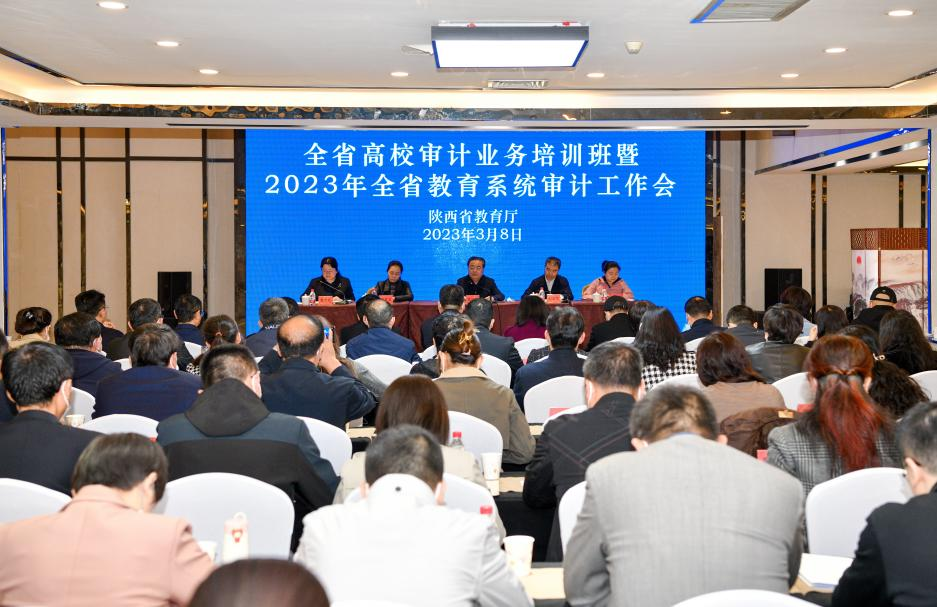 2023年3月7日至9日,陕西省高校审计业务培训班暨2023年全省教育系统审计工作会在宝鸡市召开,省委教育工委委员、省教育厅副厅长王海波出席会议并讲话,省教育厅财务处处长刘宏恩部署2023年审计工作要点,我校田昊副书记在工作会上作交流发言,本次会议共有陕西各高校审计部门负责人共70余人参加。