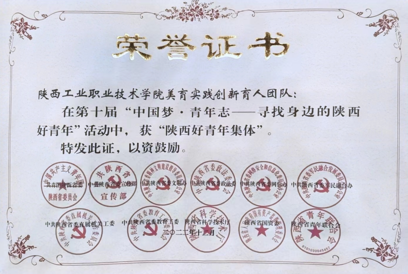 4月26日,由陕西团省委、陕西省委宣传部、省委教育工委等11家单位共同举办的第十届“陕西好青年”颁奖仪式在西安交通大学第一附属医院举行。团陕西省委书记、省青联主席徐永胜,团陕西省委副书记李臻,西安交通大学第一附属医院党委书记马辛格出席颁奖仪式,获奖个人以及集体代表参加了此次活动,我院美育实践团队代表教师毛建芳上台领奖,这也是我院首次荣获该项荣誉。