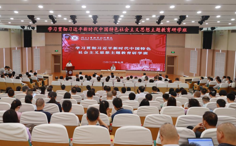 为扎实推动主题教育深入开展,深入学习贯彻习近平新时代中国特色社会主义思想和党的二十大精神,进一步加强学校干部队伍及骨干教师队伍建设,7月8日至9日,学校在渭城校区学术会堂召开学习贯彻习近平新时代中国特色社会主义思想主题教育研学班。校领导班子成员、全体处科级岗位干部、各支部书记、教研室主任及教师代表共计400余人参加了本次研学。
