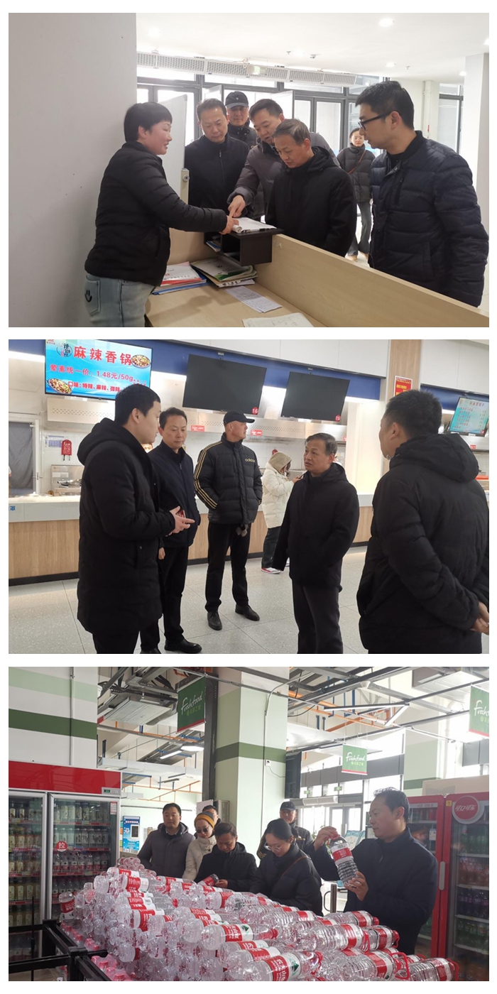 会后,贺天柱带领两校区办公室、后勤处、教务处、保卫处、基建处、学生处、国资处等部门负责同志,对教学楼、实训室、生活服务中心、学生公寓、餐厅、校园超市、快递站等场所进行了全面细致的检查与指导,对寒假假期安全检查发现问题的整改情况“回头看”,详细了解新学期开学准备、安全隐患排查情况,检查各部门安全工作部署落实情况,对存在的问题及隐患提出整改意见和建议,为学校各项工作开展做好保障,确保学校大局稳定和师生健康安全。