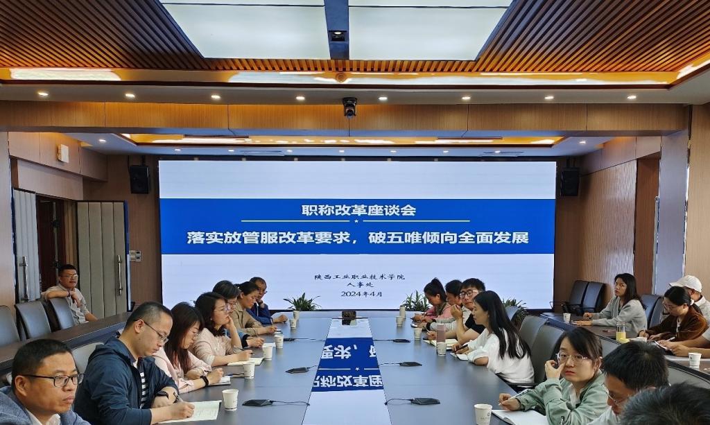 为深入贯彻落实人社部、教育部、陕西省人社厅、教育厅关于深化高等学校教师职称制度改革的文件要求,进一步推进学校教育评价机制改革,建立完善更加公平、合理、科学的职称评审制度,更好的发挥职称评审激励导向作用,激发广大教师干事创业积极性,切实推动学校高质量发展,4月19日上午,学校在崇文楼九楼第一会议室组织召开职称改革座谈会,各二级学院(部)教师代表等28人参加了座谈会,会议由人事处处长殷锋社主持。