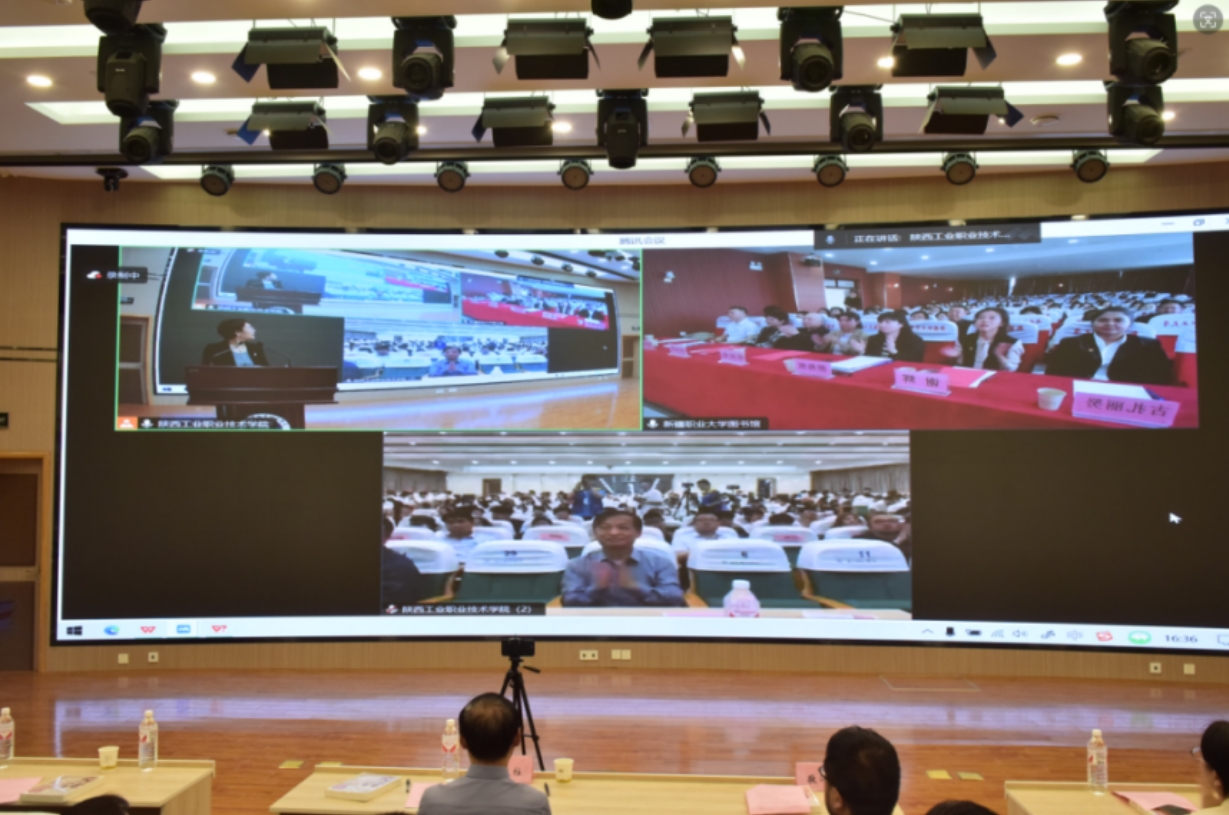 第一阶段为两校2024年“书香校园”读书文化节联合启动仪式,新疆职业大学校党委常委、统战部部长游海丽教授,我校校党委委员、副书记贺天柱教授,以及两校图书馆和各职能部室负责人、教职工代表、学生代表600余人现场参会。会议由我校图书馆馆长王丁主持。