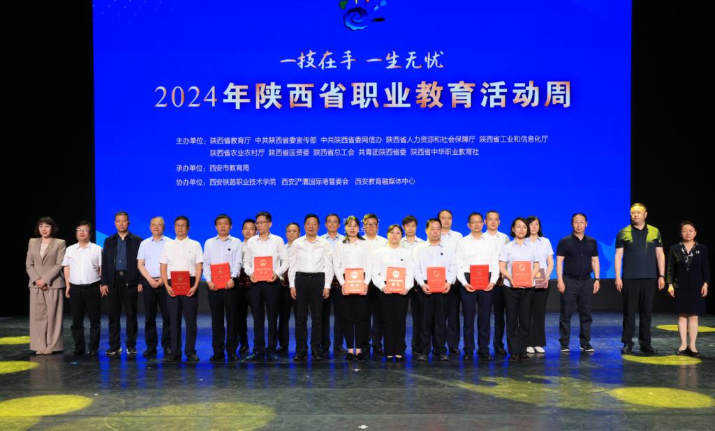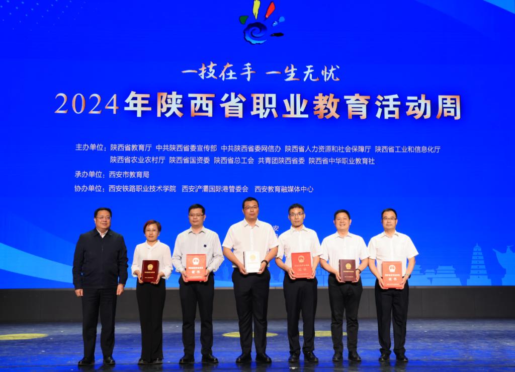 启动仪式设2022年国家职业教育教学成果奖获奖项目颁奖环节,与会领导为获奖院校颁奖。2022年,陕西省共获得2022年国家职业教育教学成果奖21项,我校获一等奖1项、二等奖4项,是陕西省获奖数量最多的高职院校。