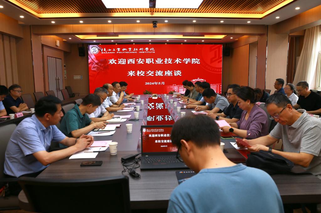 西安职业技术学院党委委员、副院长符虎刚对我校的热情接待表示感谢,回顾了西安职业技术学院的建校历史,简要介绍了西安职业技术学院的办学现状,希望与我校进一步加强联系,深化交流合作。会后,双方就人才培养、科研创新、师资队伍建设、校企合作、专业群建设等方面进行了深入交流。