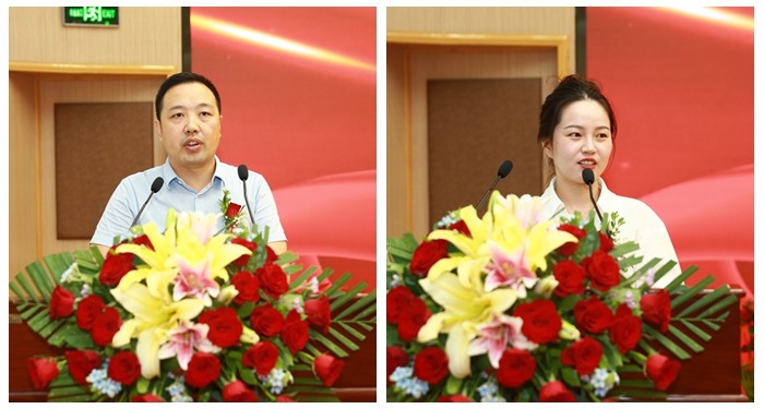 在第三个“坚守初心踔厉奋发锐意进取共筑华章”篇章。优秀教师代表刘艳申从工作实际出发,分享了他进校后在专业技能方面的成长经历。他用自己的经历告诉大家,作为一名职业院校教师,只有自身掌握行业的前沿知识和过硬的专业技能、拥有良好的职业思维和职业素养,才能教出好学生。他号召大家,要以学生的成人成才为己任,尽职尽责,提升自我,为让学生顺利走上工作岗位,让学校永葆企业满意、家长放心、学生向往的高品质学校而奉献力量。优秀辅导员代表李路结合5年学生工作经历,分享了三点感慨和体会,一是在与学校“追求卓越、争创一流”的共同拼搏中收获的荣誉感;二是在关心、帮助、支持学生取得成长、成功、和成才后的幸福感;三是在教育实践中所领悟到的作为一名新时代教育工作者的责任感;并表示在今后的工作中,将从学生的角度出发,换位思考,以身作则、拓展专业知识、练就技能本领,做学生锤炼品格、学习知识、创新思维、奉献祖国的引路人。