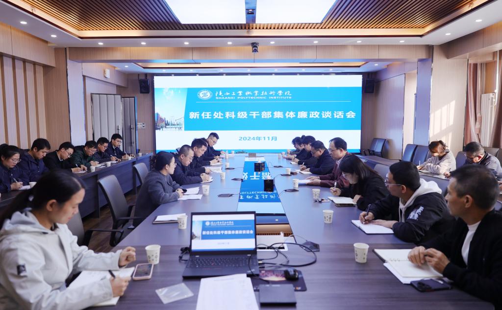 11月4日下午,校纪委在渭城校区崇文楼第一会议室召开新任处科级干部廉政谈话会,2024年新任处科级干部39人参加了会议,党委副书记、纪委书记康强作廉政谈话,纪委副书记、综合室主任孙继龙主持会议。