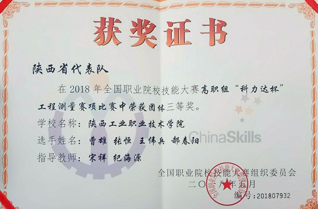5月27日,2018年全国职业院校技能大赛“工程测量大赛”赛项比赛在云南昆明顺利闭幕。来自全国30个省市自治区的83支队伍进入决赛。由土木工程学院教师宋祥、纪海源指导,工程测量1601、1602班王伟兵、张恒、曹雄、郝春阳4名同学获本次比赛团体三等奖。