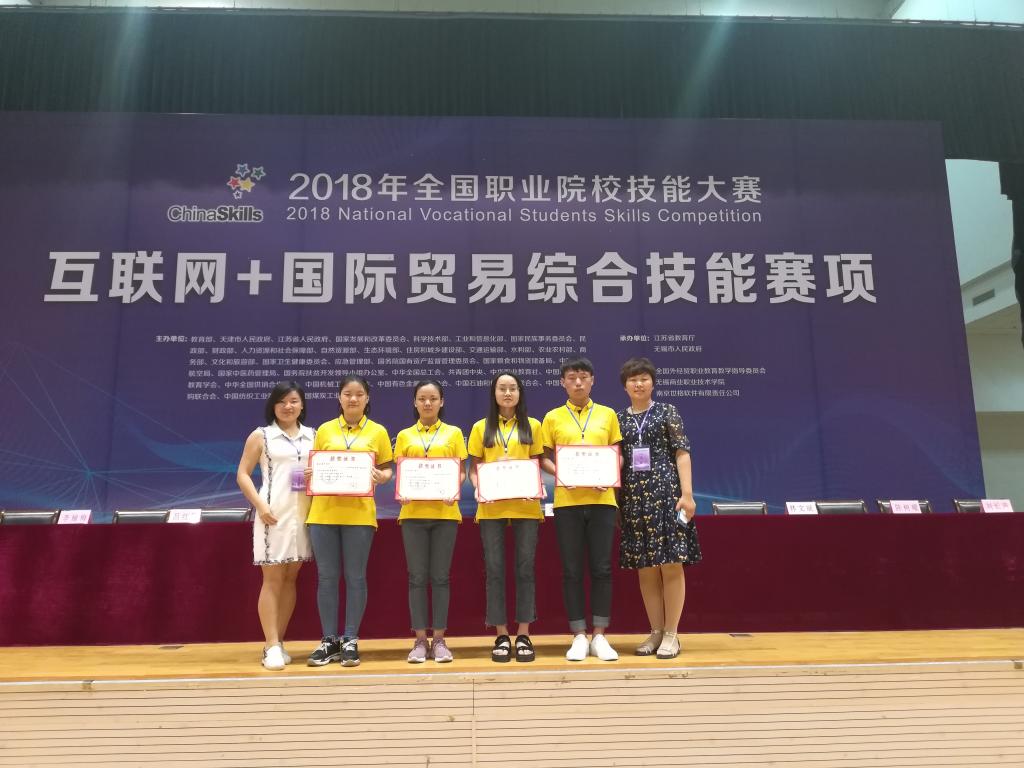 5月27日,2018年全国职业院校技能大赛“互联网+国际贸易综合技能”赛项(高职组)在无锡商业职业技术学院落下帷幕。经过两天的激烈角逐,最终由我院物流管理学院教师王粉萍、杨华指导,市场营销1602班潘成杰、任凯悦,商务英语1601班程锦锦、商务英语1602班邱怀露4名同学组成的代表队斩获团体三等奖。