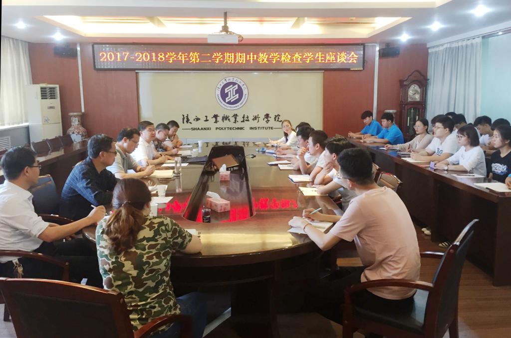 5月16日下午,我院期中教学检查学生座谈会在崇文南楼第一会议室召开,副院长杨卫军,教育教学质量管理中心、教务处、学生处、后勤处等部门领导和各二级学院学生代表参加了座谈,座谈会由质管中心主任南欢主持。