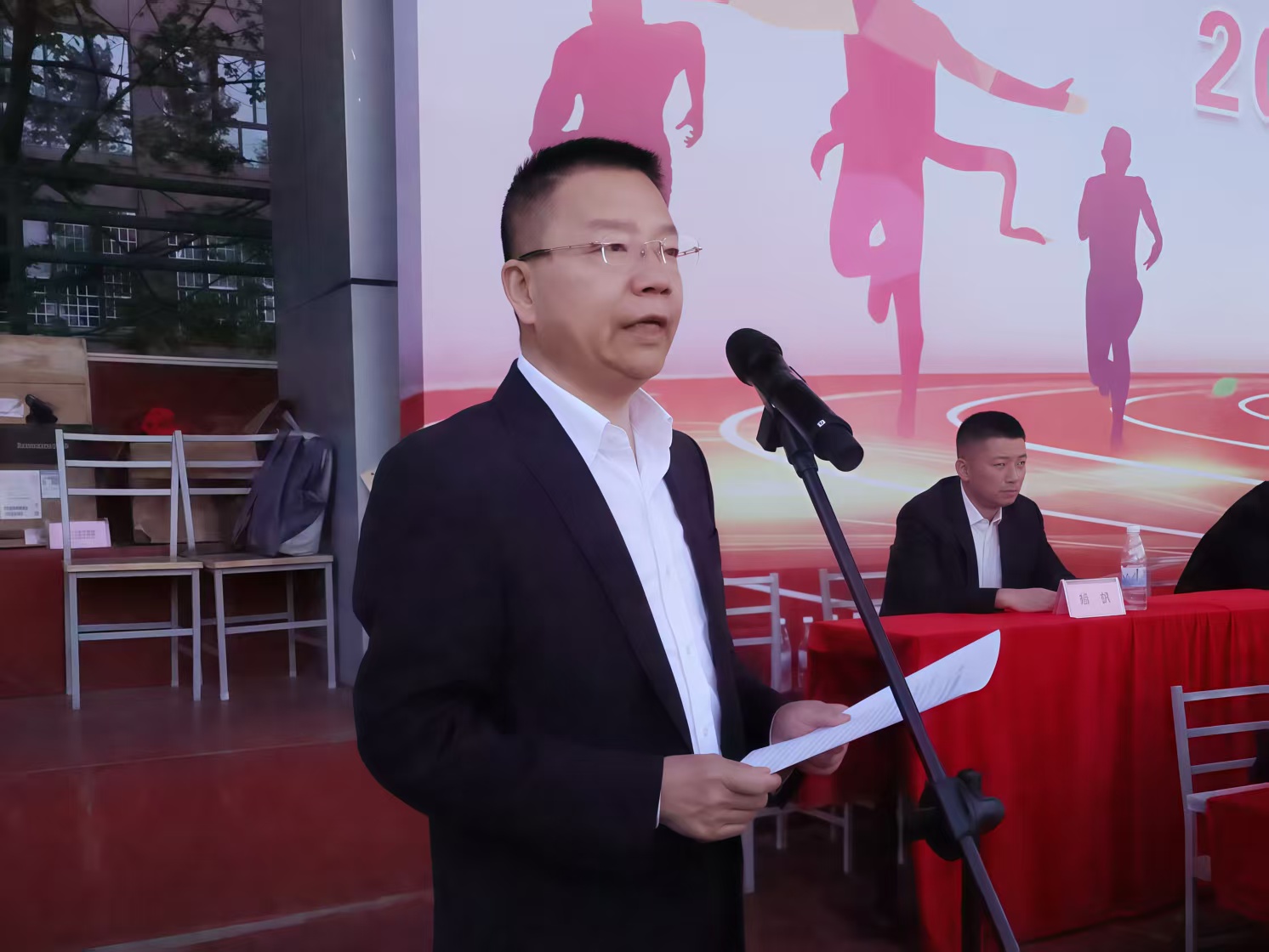 庄严的升旗仪式结束后,党委书记惠朝阳致开幕辞。他表示,体育是社会发展和人类进步的重要标志,是综合国力和社会文明程度的重要体现,是学校落实立德树人根本任务的大事要事。长期以来,学校高度重视学生德智体美劳全面发展,牢固树立“健康第一”的教育理念,全面落实“三全育人”“五育并举”的教育方针,立志培养爱党爱国、身心健康、素质全面、技能过硬、全面发展的建设者和接班人。希望大家动起来、舞起来,步履不停、笃行不怠,锻炼强健有力的体格、磨砺坚韧不拔的意志,将“更高、更快、更强”的体育精神充分融入到“追求卓越、争创一流”的工院精神中来,以健康的体魄、积极的心态、奋斗的精神全面投入到学校建设发展中,为全面创建职业本科大学做出有力贡献。