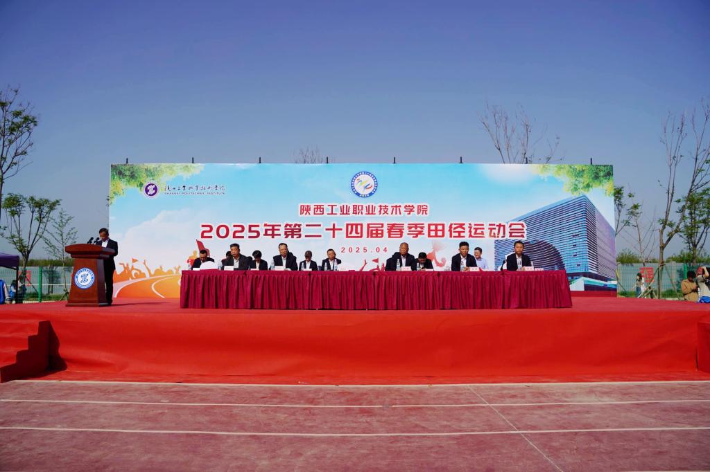 裁判员代表、运动员代表庄严宣誓,保证公正裁决、严守规程,确保比赛工作顺利进行。最后,党委书记惠朝阳、党委副书记贺天柱在两校区宣布:“陕西工业职业技术学院第二十四届春季田径运动会开幕!”