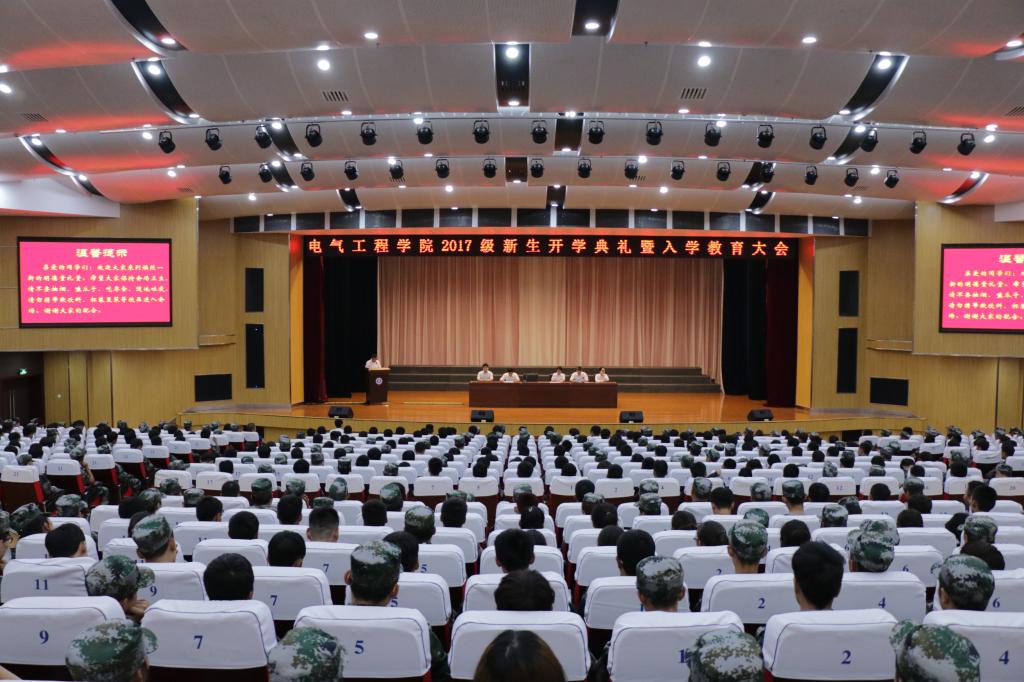 9月22日下午,电气工程学院在明德堂召开了2017级新生开学典礼暨入学教育大会。学院教务处副处长刘军旭,学生处副处长张科海,电气工程党总支书记杜云、副院长夏东盛参加了会议。庄严的国歌声过后,杜云书记致辞,她回顾了电气学院的发展历史和取得的成就,从观念转变、坚持奋斗、诚信做人、健康成长、珍惜拥有等5个方面给予新同学语重心长的教诲,希望每一位新生从入学的第一天开始养成良好的生活习惯,努力学习,提高综合素养,成为优秀大学生。