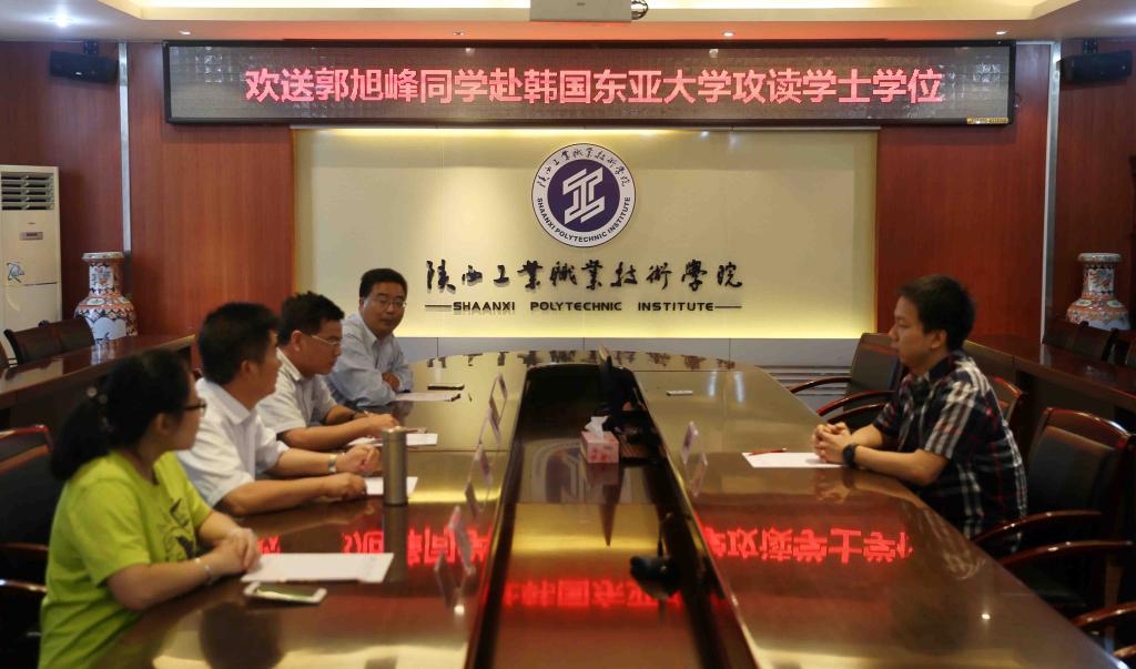 8月29日,我院为即将赴韩国东亚大学攻读学士学位的郭旭峰同学举行欢送会。党委副书记、副院长刘永亮,信息工程学院院长何玉辉、学工办主任何瑾、党政办副主任秦景俊参加了会议。