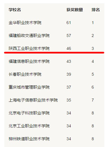 日前,教育部职业教育与成人教育司对2017年全国职业院校技能大赛(常规赛)获奖名单进行公示。全国37各地区共有13655名选手参加了在天津、吉林、江苏、浙江、安徽、福建、江西、山东、河南、湖北、湖南、广东、广西、重庆、四川、贵州、云南、陕西、青岛等19个赛区分别举行的中、高职组81个项目的比赛。奖项数量排行榜显示,我院以46项获奖数量高居全国第三、西部省区第一。