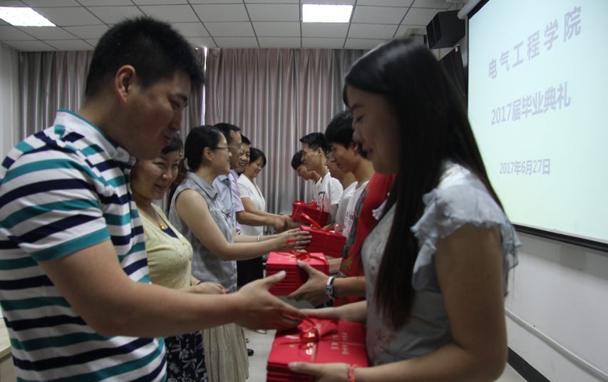 电气工程学院—27日,电气工程学院2017届学生毕业典礼及毕业证发放仪式在行知楼举行。电气学院党总支书记杜云,副院长夏东盛、刘引涛,毕业班班主任、辅导员及毕业生、在校生代表参加典礼。