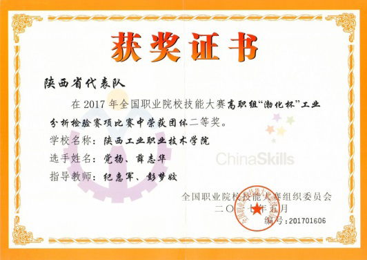 比赛集训期间,省教育厅高教处领导、学院领导,教务处、化工与纺织服装学院等部门高度重视,积极组织学生的集训与选拔工作。该赛项自从2012年设置为国赛赛项以来,我院代表队连续5年获得代表陕西省参赛的资格,连续4年分别获得2个三等奖、2个二等奖,成绩稳步上升。我院也将以此为契机,深入落实职业院校技能大赛精神,创新驱动发展,弘扬工匠精神,为打造中国职业教育品牌做出更大贡献。