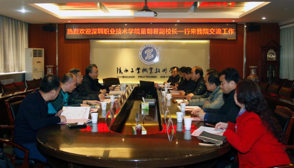董朝君副校长对我院的热情接待表示感谢,并介绍了深圳职业技术学院的相关情况。随后,双方就学后勤、基建部门组织框架及各科室设置情况;基建及维修工程相关专业工程师人员配备及管理运行情况;物业管理、饮食管理,食堂外包情况;节能工作等方面的事宜进行了深入交流探讨。
