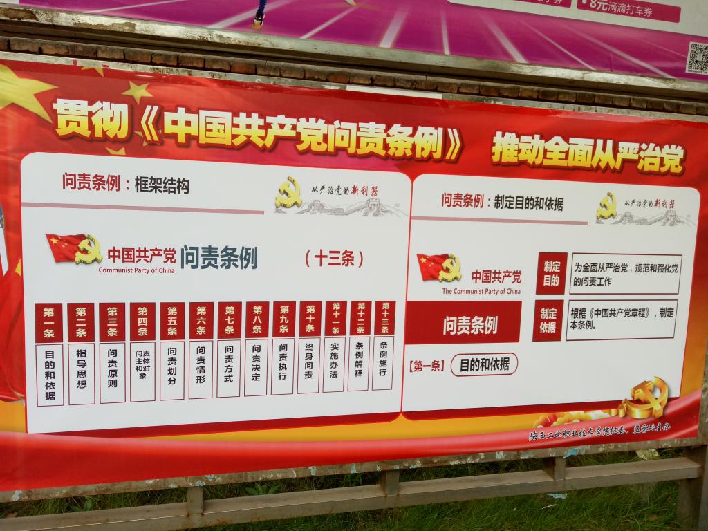 下半年以来,结合“两学一做”学习教育要求,9月底,学院纪委制作了《贯彻<中国共产党问责条例>推进全面从严治党》系列宣传板,详细解读了《问责条例》的指导思想、问责主体、问责对象、责任划分、问责情形、问责方式以及实行终身问责等重点内容,并在学院宣传栏展出。10月份,发文要求党员干部认真收看中央纪委宣传部、中央电视台联合制作的八集专题片《永远在路上》,并组织专题讨论。向各党总支发放了《中国共产党问责条例》和相关学习辅导材料,学习教育不断深化,营造良好的廉政建设氛围。