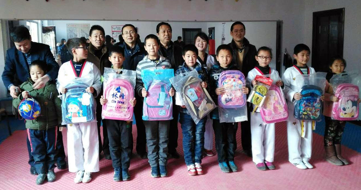 在郭莹莹同学的跆拳道馆,电气学院小分队一行为当地群众演出了陕北信天游、吉他弹唱、长笛独奏、口琴独奏、陕北大秧歌等精彩节目,还为同学们赠送了书包、文具等学习用品和足球、跳绳等文体用品。郭莹莹同学激动地表示,自主创业难,她绝不忘母校老师的指导和教诲,坚持把道馆办下去,越办越好,越办越大,用实际行动为母校争光。