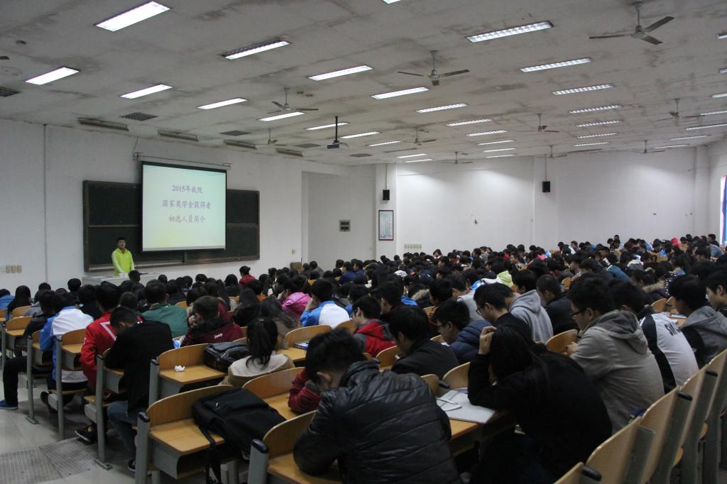 12月1日下午,学生处在崇文西楼召开了主题为“学楷模、树新风、促和谐”的2015年国家(励志)奖学金优秀学生学习经验交流会,学生处副处长张科海、二级学院辅导员、资助中心工作人员及350余名学生代表参加了学习经验交流会。