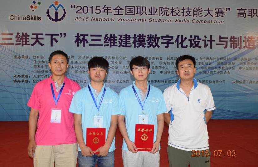 7月1至2日,全国职业院校技能大赛高职组制造大类“三维建模数字化设计与制造”赛项比赛在天津举行。由我院数控工程学院数控1201班郭康康、数控1301班刘永强两位学生组成的陕西一队荣获团体二等奖,两位选手良好的专业水平和职业素养得到现场专家裁判的好评。
