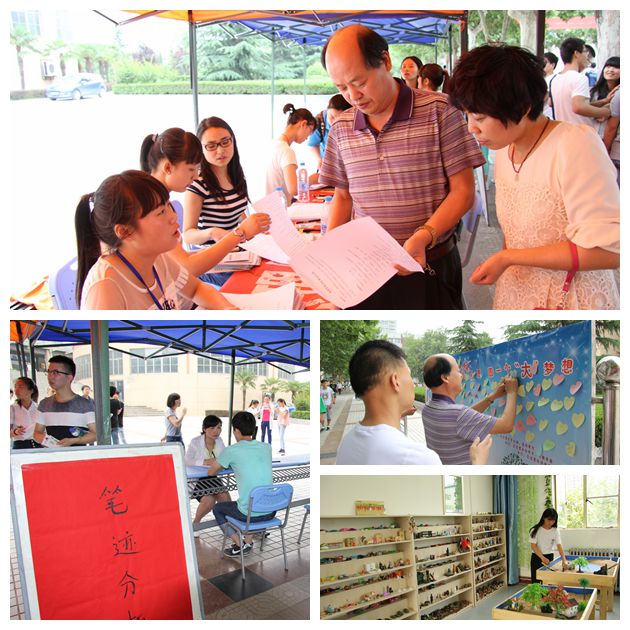 现场心理测评采用了大学生人际关系综合诊断量表、大学生职业倾向测试和情绪智商-EQ测试问卷,现场测评有600多名学生参与了三项心理测试,发放了800余份的问卷,并由咨询中心老师分析和解答,使同学们更加全面清楚的认识自己。笔迹心理分析、心理沙盘体验活动中,学生们与咨询老师“一对一”的进行咨询,5.25当天共有60余名学生亲身体验,使同学们更加认识到维护心理健康的重要性。同学们在“与压力‘和解’,和乐观‘牵手’”的横幅标语上郑重地签下了自己的名字,并且在心灵许愿墙上写下了自己的心灵寄语,活动现场气氛轻松快乐。