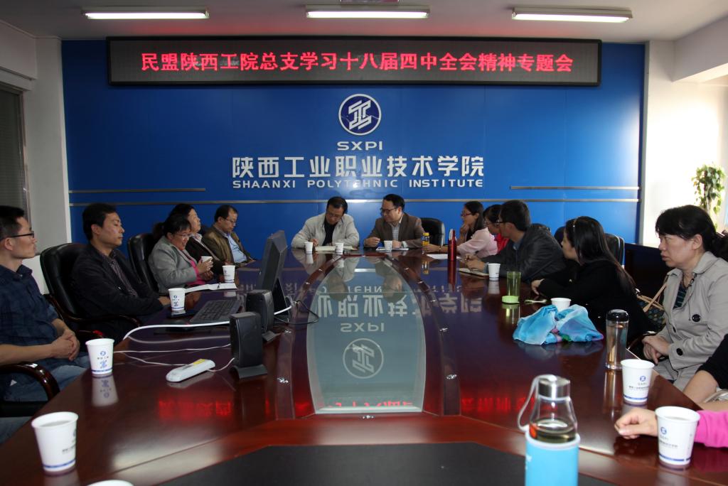 10月24日下午,民盟陕西工院总支召开全体盟员大会,学习中共十八届四中全会精神。组织部部长兼统战部部长朱忠军出席会议,民盟总支主委杨卫军主持会议。