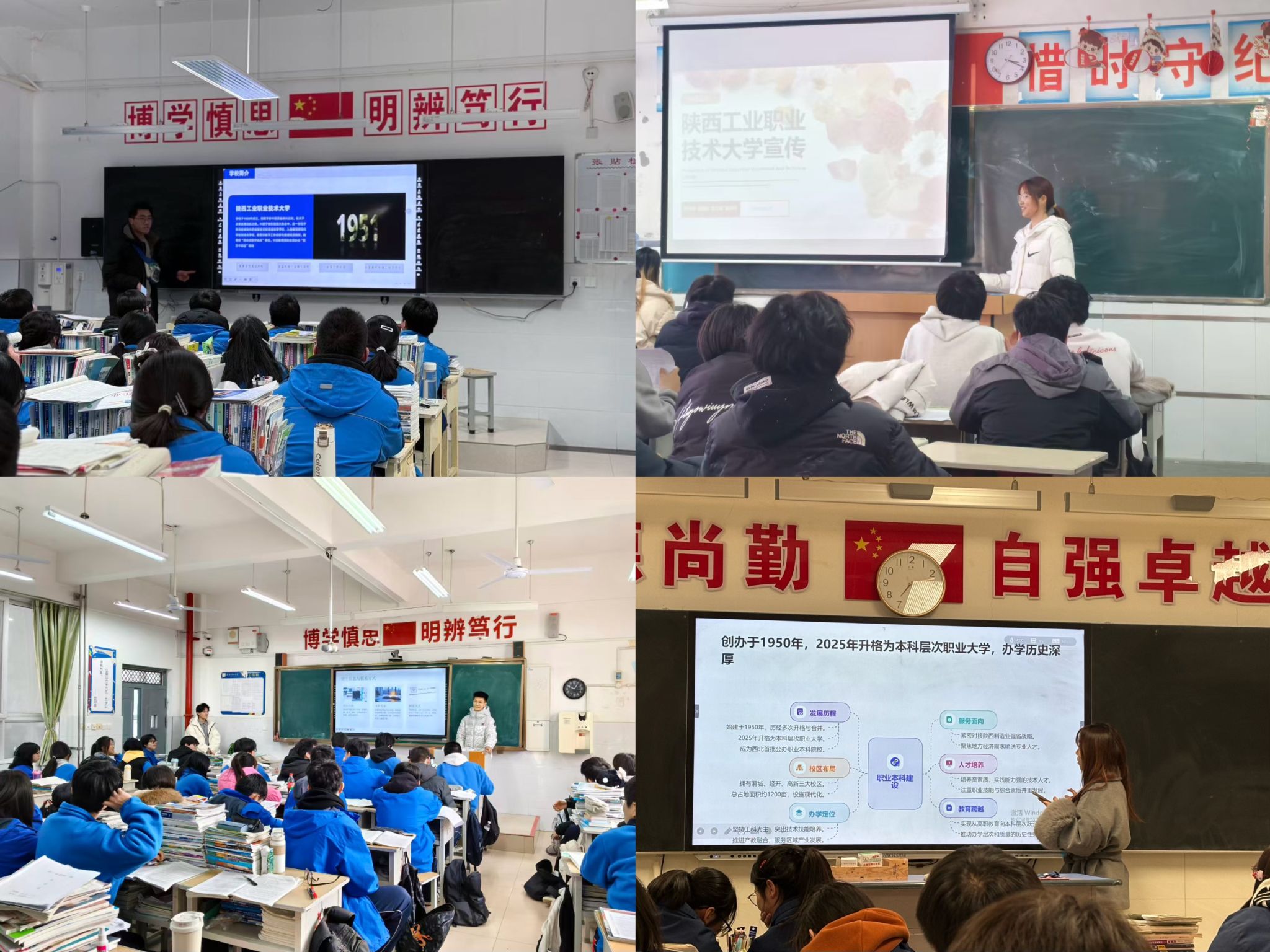 “工大我代言 大使家乡行”招生宣传实践活动。为进一步做好学校招生宣传工作,扩大学校社会影响力、提升学校社会声誉,青年学子化身学校“代言大使”返回高中母校,从我校七十五载办学历史、师资队伍、专业特色、录取政策、就业优势等方面全方位宣传学校办学实力;从校园环境、文化建设、社团活动等方面介绍育人氛围;从奖学金、助学金、绿色通道等方面讲解资助政策,同时为学弟学妹分享备考方法、解读志愿填报技巧,传递工大温度与青春力量。