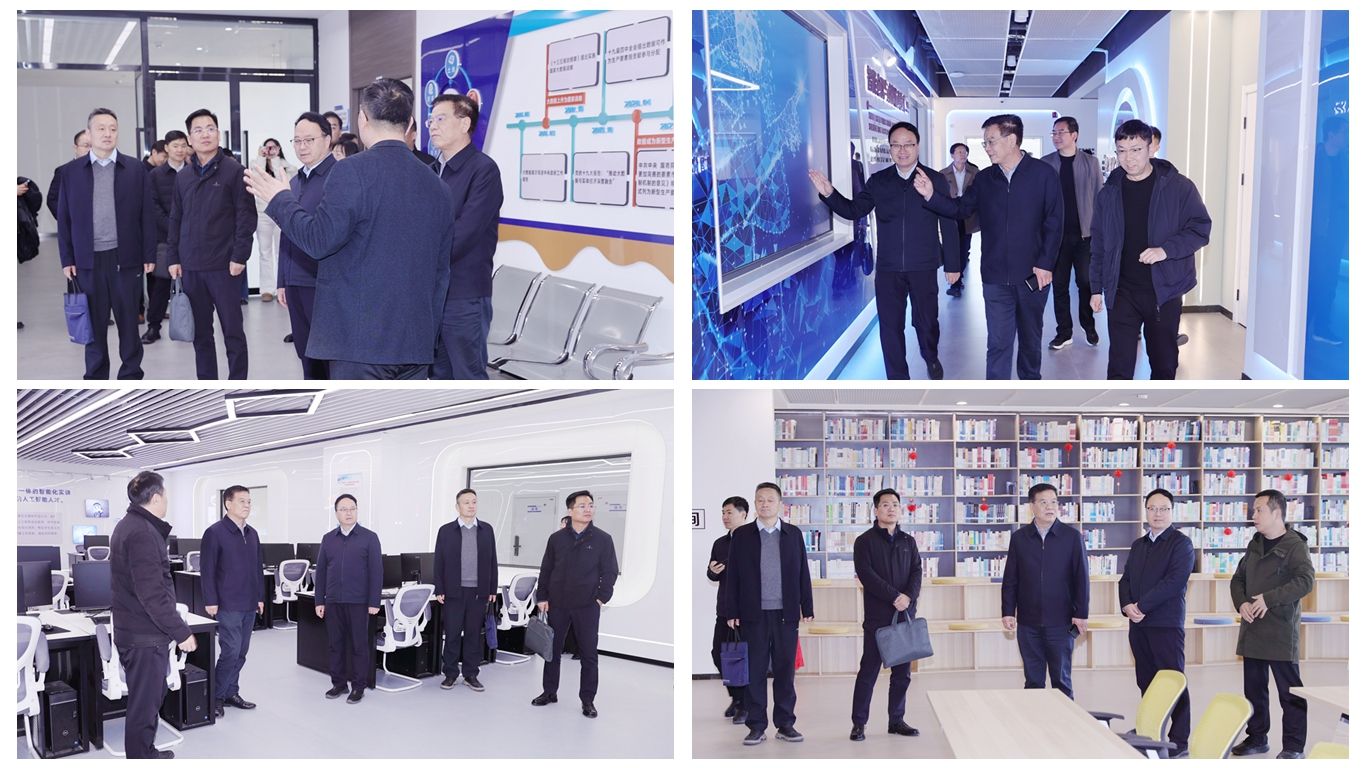 会前,朱忠军一行先后现场参观考察经开校区先进制造产业链数据资产服务中心、智能仓配及数据化运营实训中心、华为产教融合实训基地、图文中心图书馆和智慧运营中心,详细了解了我校产教融合平台建设、校企协同育人模式等情况,认真听取了实训基地建设规划、教学运行机制及产教融合实训开展情况的介绍。