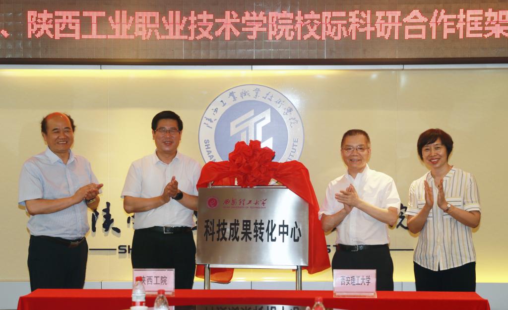 在与会领导的共同见证下,李孝廉校长和惠朝阳书记共同为“科技成果转化中心”揭牌,李孝廉校长还与张晓云院长签定了两校科研合作框架协议。