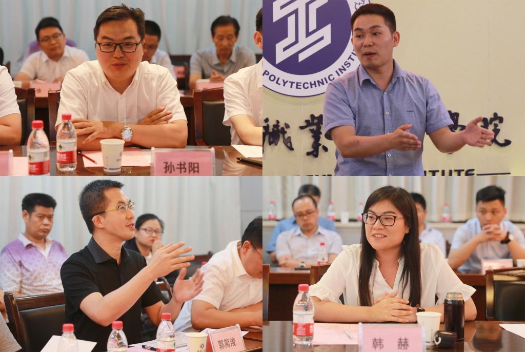 6月28日晚,按照校企协同育人战略联盟2018年大会的安排,校企协同育人座谈会在崇文南楼第一会议室举行,我院党委书记惠朝阳、院长张晓云,浙江海德曼智能装备股份有限公司、欧姆龙(中国)有限公司、罗克韦尔自动化(中国)有限公司等36家企业领导,校企处、教务处、科研处及各二级学院负责同志共60余人参加座谈。校企处处长卢文澈主持会议。
