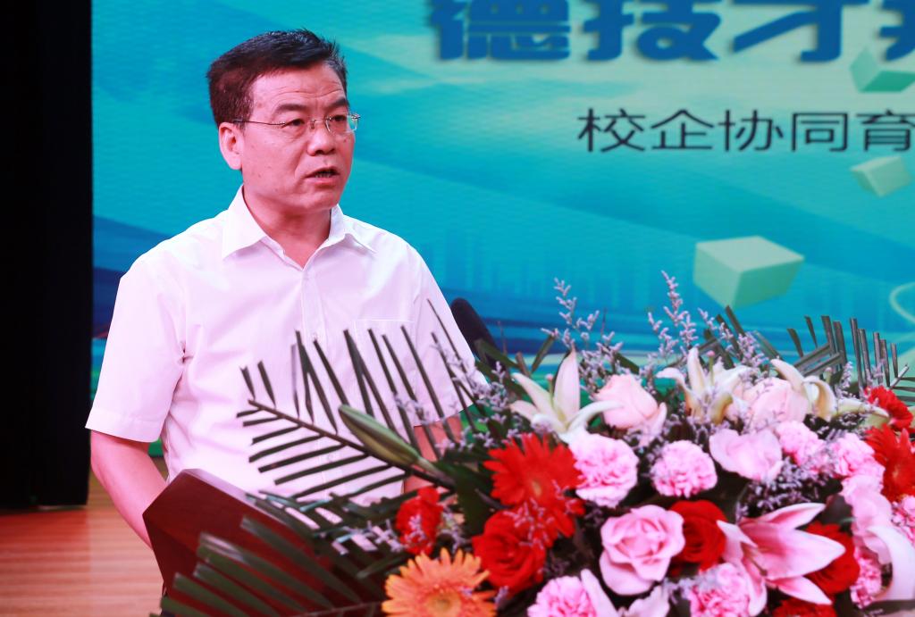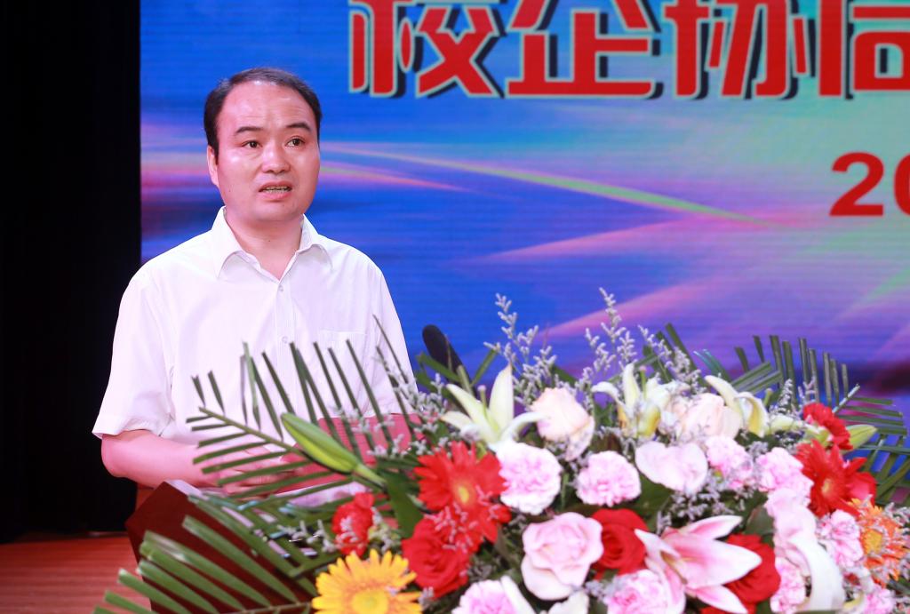 在介绍学院近年来在深化产教融合,推进校企协同育人等方面所做的探索和取得的成绩后,他表示,本次会议既是对以往校企合作的充分肯定和全面总结,也开启了2018年进一步深化合作、共同发展的新征程,让我们共同携手,持续完善“联盟”的“供需匹配、联动跟进、精准培养、协同育人”新机制,积极进取,开拓创新,团结协作,合作共赢,不断开创校企合作、产教融合的新局面。
