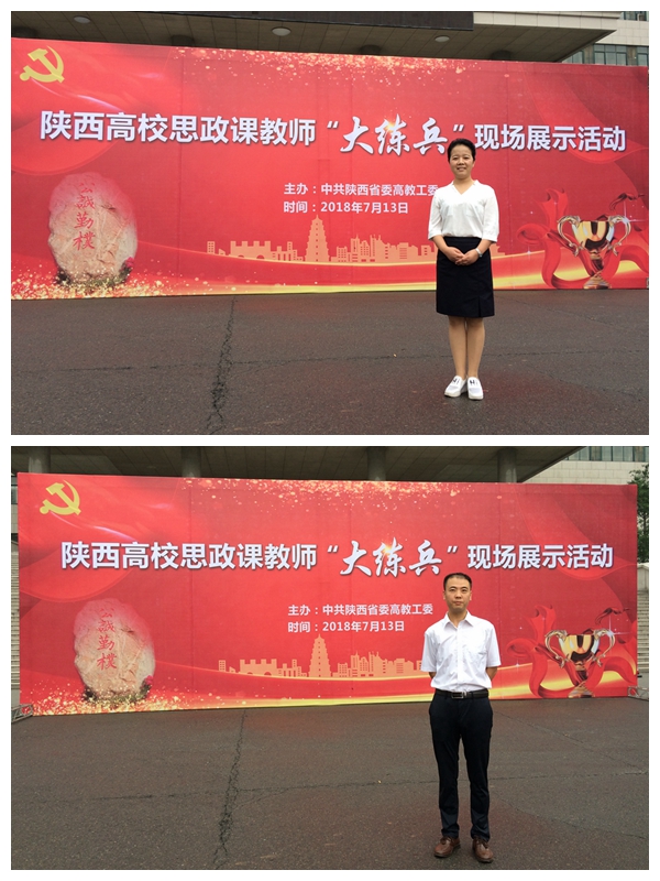 7月13日,2018年“陕西高校思政课教师大练兵”现场展示活动在西北大学举行,我院思政部专职教师董娟与兼职教师王辉,分别以《立青春志 做追梦人》《坚决打赢精准扶贫攻坚战》为题进行实景课堂教学决赛环节展示,并凭借出色的表现获得专家评委一致肯定,被陕西省委高教工委分别授予“陕西高校思政课教学标兵”及“陕西高校思政课教学能手”荣誉称号,为我院“思政课教师大练兵”主题活动画上圆满句号。