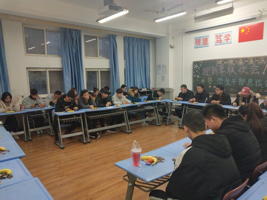 12月28日,材料工程学院在崇文南B105教室召开学生干部恳谈会暨新年联欢会,学工办主任赵双军,辅导员吕宏、胡瑞霞,学生会干部、学生支部党小组成员参加了会议。