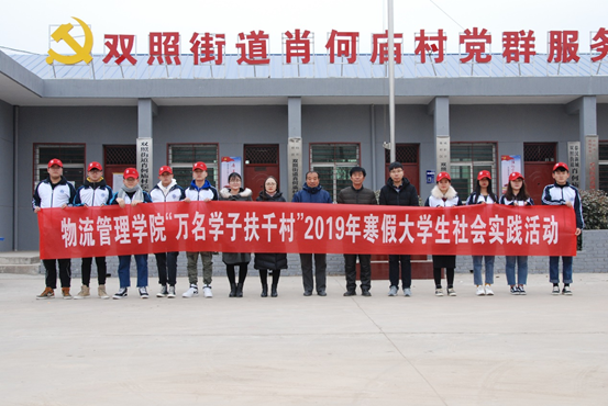 为贯彻落实《中共陕西省委教育工委关于组织开展“万名学子扶千村”2019年寒假社会实践扶贫攻坚专项活动的通知》(陕教工团〔2019〕1号)文件精神,响应院团委通知要求,进一步提高在校大学生知行合一能力、心系民生意识、志愿服务精神,1月18日,物流管理学院组织11名学生在团总支书记万永亮,学工办辅导员李朵朵、王佳玫的带领下赴双照镇肖何庙村进行寒假社会实践活动。