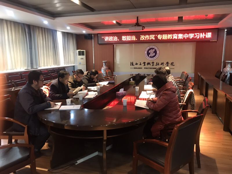 按照我院《关于持续深入推进“讲政治、敢担当、改作风”专题教育的通知》要求,为保障专题教育全员参加、不漏一人。1月25日上午,专题教育领导小组办公室对集中学习期间因出差等原因缺课的干部在崇文南楼第一会议室进行了集中补课。