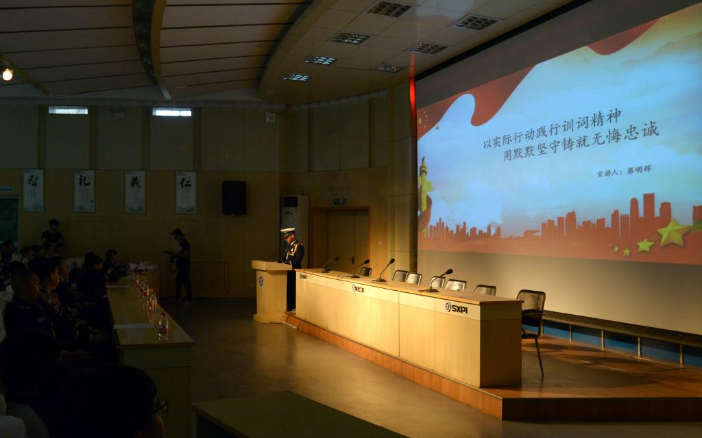 4月25日下午,由团委主办的纪念五四运动100周年“青春心向党,建功新时代”系列活动之“致敬逆行的青春”——消防事迹进校园分享会在学术会堂成功举行,咸阳市消防支队政治处副主任赵兴东,政治处组教科科长景璟出席活动,我院团委书记郝平、各二级学院团总支书记、辅导员老师及四百余名团员青年聆听了分享会。