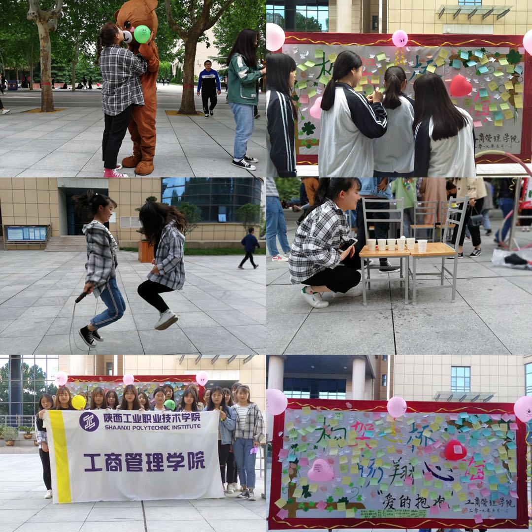 本次活动,志愿者们通过穿着可爱玩偶服,吸引大家的眼球,给过往的同学们送上拥抱,让她们感受到爱的温暖并参与到志愿者们活动中去。活动现场设有很多有趣的小游戏,形式多样,有踩气球、转呼啦圈、跳绳、吹乒乓球等,丰富多彩的游戏内容充分调动了同学们的积极性,活跃了现场的气氛,让同学们尽情的享受到了游戏带来的欢乐。活动过后,同学们在便利贴上写上他们对于自己、家人、朋友的祝福和心愿,并为每位参与者送上了精美小礼品。