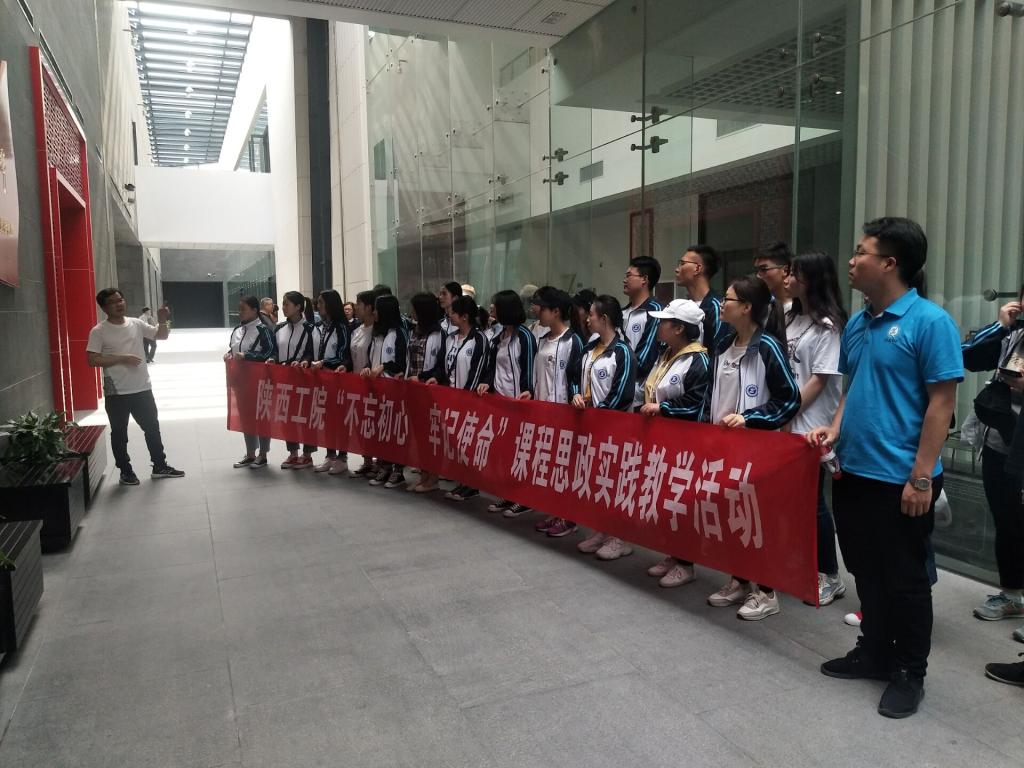 为充分彰显职业教育特色,深化课程思政教学改革,推动课程思政实践教学项目化,按照学院2019职教周系列活动安排,5月10日下午,宣传部、思政部组织思政课程专兼职教师、专业课程教师和学生代表近50人前往咸阳市民文化中心开展以“不忘初心,牢记使命”为主题的“课程思政实践教学活动。