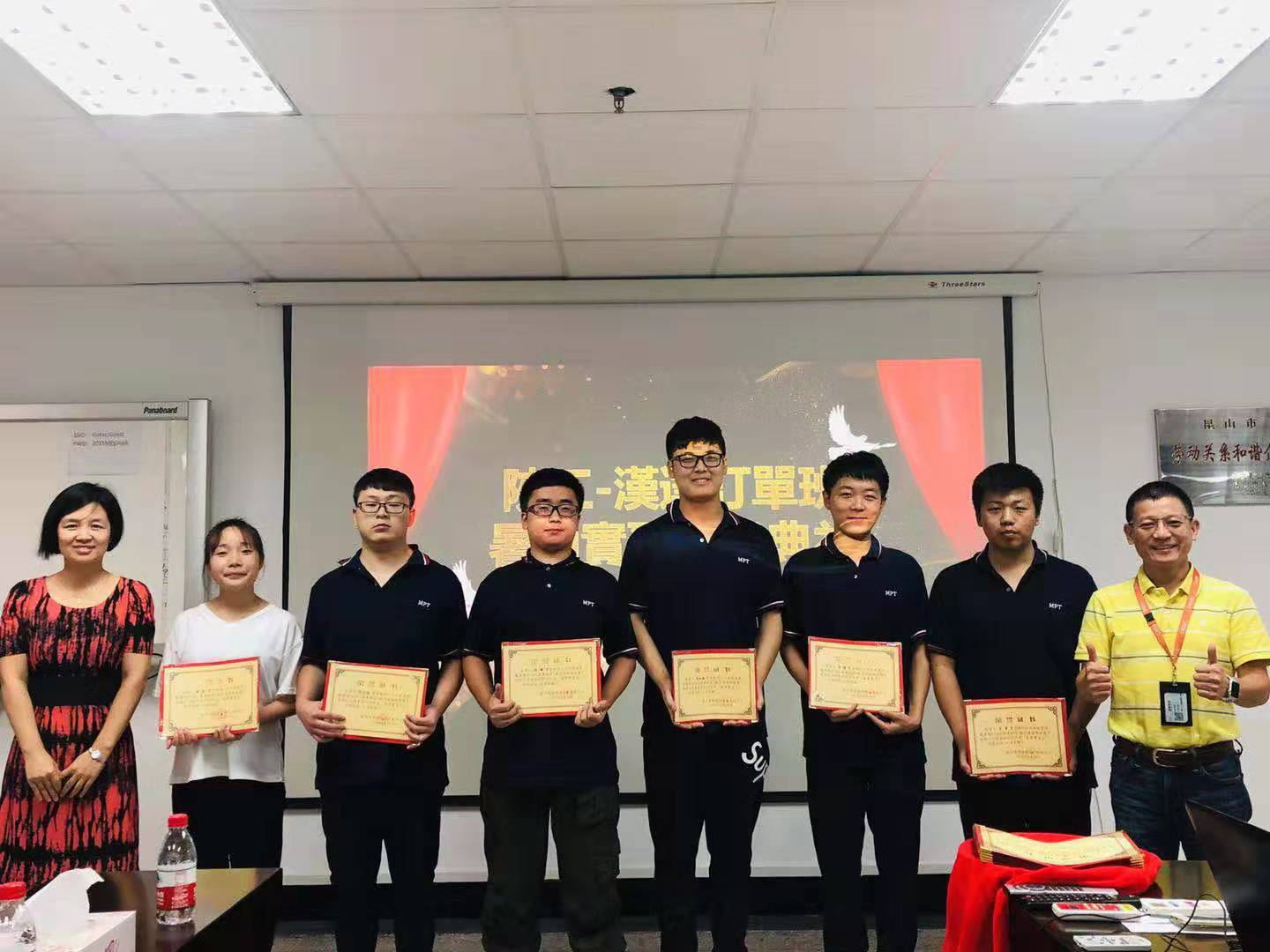 8月14日,2019届“陕工—汉达” 模具设计订单班暑期实习结业典礼在汉达精密电子(昆山)有限公司举行,材料学院院长李云及专业教师徐广胜、张战英,汉达公司人力资源总监郑智仁、人力资源部经理毛利、训练发展部经理徐永参加典礼,并与订单班学生、毕业生代表进行座谈。