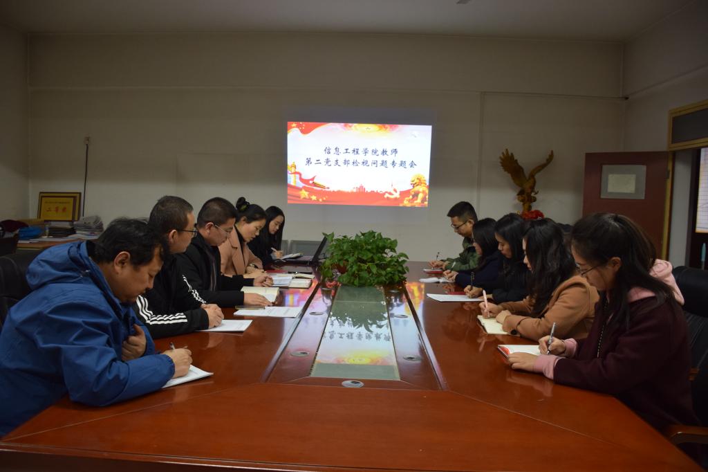 11月21日,信息工程学院教师第二党支部召开“不忘初心、牢记使命”主题教育对照党章党规找差距暨检视问题专题会议。第二支部书记李俊带头对照检查并作总结,她强调,要深入学习贯彻习近平总书记关于“不忘初心、牢记使命”重要论述,提高理论学习的质量,不断把理论与实践、学习与运用、言论与行动更好地结合起来,用实践成果检验学习成果。