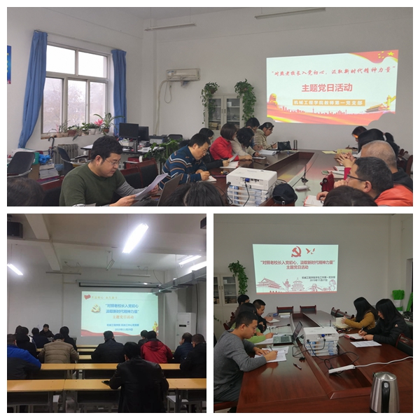 11月29日,机械学院党总支教师第一、第二支部(机加工中心支部)和学生第一、第二支部分别在行知楼E412室和机加工技术训练中心多媒体教室开展了“对照老校长入党初心 汲取新时代精神力量”主题党日活动,全体教师党员分别参加各支部会议,由第一支部书记张文亭、第二支部书记郭新玲、学生支部书张党清主持。