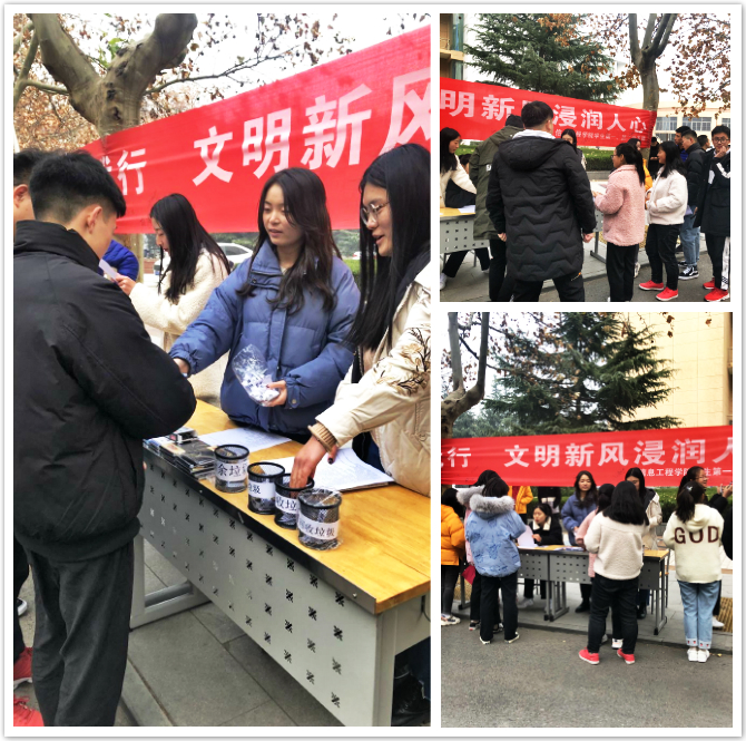 12月23日下午,信息学院学生第一、第二党支部在成才大道开展“垃圾分类你我同行·文明新风浸润校园”主题党日活动,旨在提升师生垃圾分类意识,提高资源回收利用率,改善校园环境,推进绿色发展。
