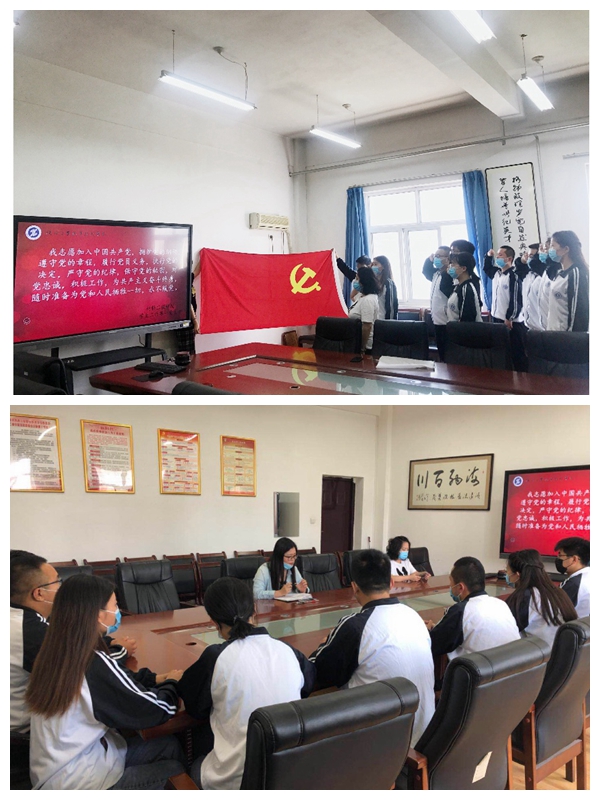 最后,学生第一党支部书记胡瑞霞向新党员表示祝贺和欢迎,他表示入党是每个学生党员人生道路上一个新的里程碑,也是今后生活、学习、工作的一个新开端。她希望大家能够坚定信念,听党话跟党走;脚踏实地,不断锤炼真本领;不忘初心、牢记使命,争做模范践行者。
