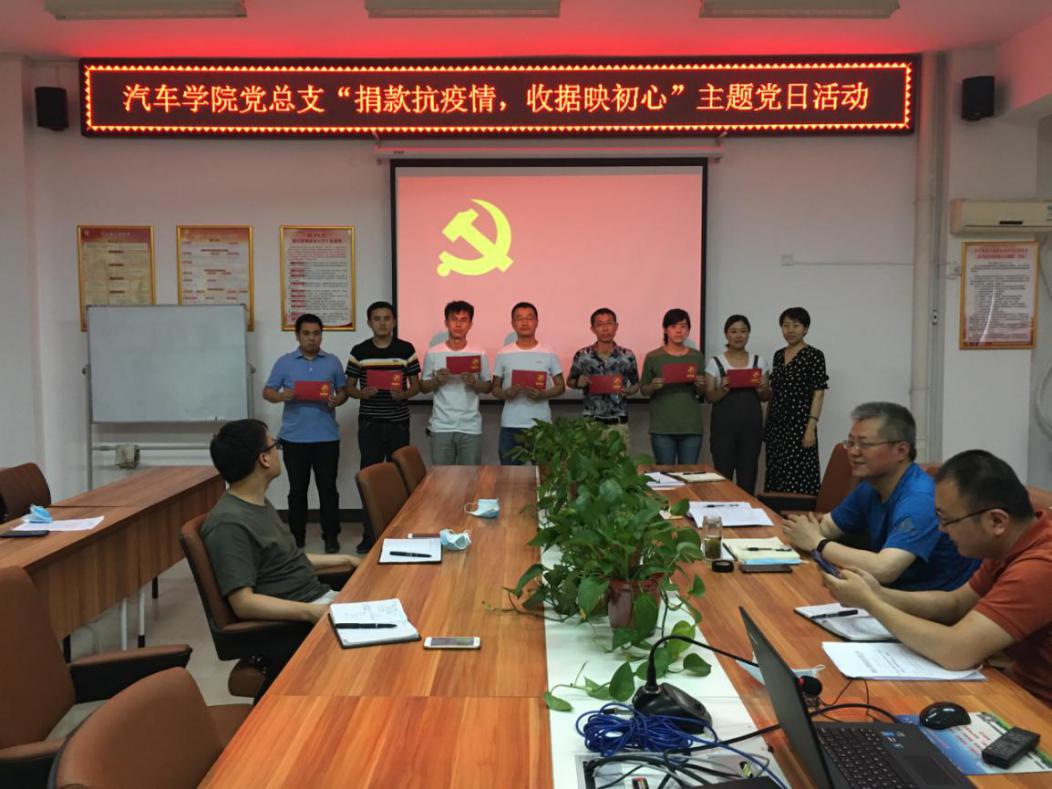 首先高亚宁组织全体党员学习了学院《关于做好新冠肺炎疫情防控党员捐款收据发放工作的通知》,通报了全国、学院及汽车学院党总支党员捐款情况。