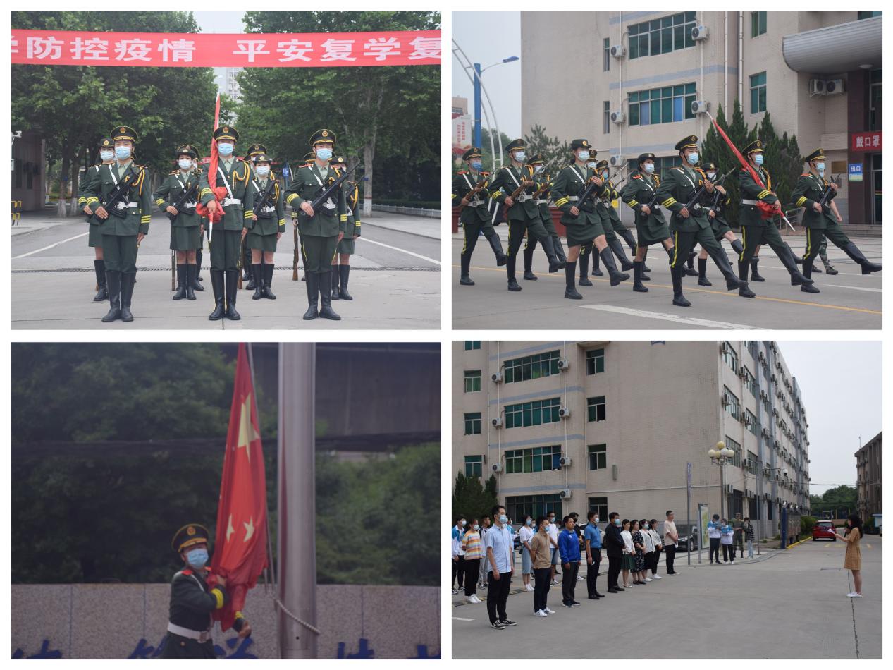 6点50分,升旗仪式正式开始。国旗护卫队迈着铿锵有力的步伐,喊着嘹亮的口号,护送鲜艳的五星红旗走向旗台。庄严的国歌中,五星红旗冉冉升起,全体师生行注目礼。升旗仪式结束后,信息学院辅导员张斯瑶老师、计应1902班李宁博同学分别作了题为《预防夏季疫情,要从你我做起》、《新时代大学生在抗疫中的使命与担当》的国旗下讲话。