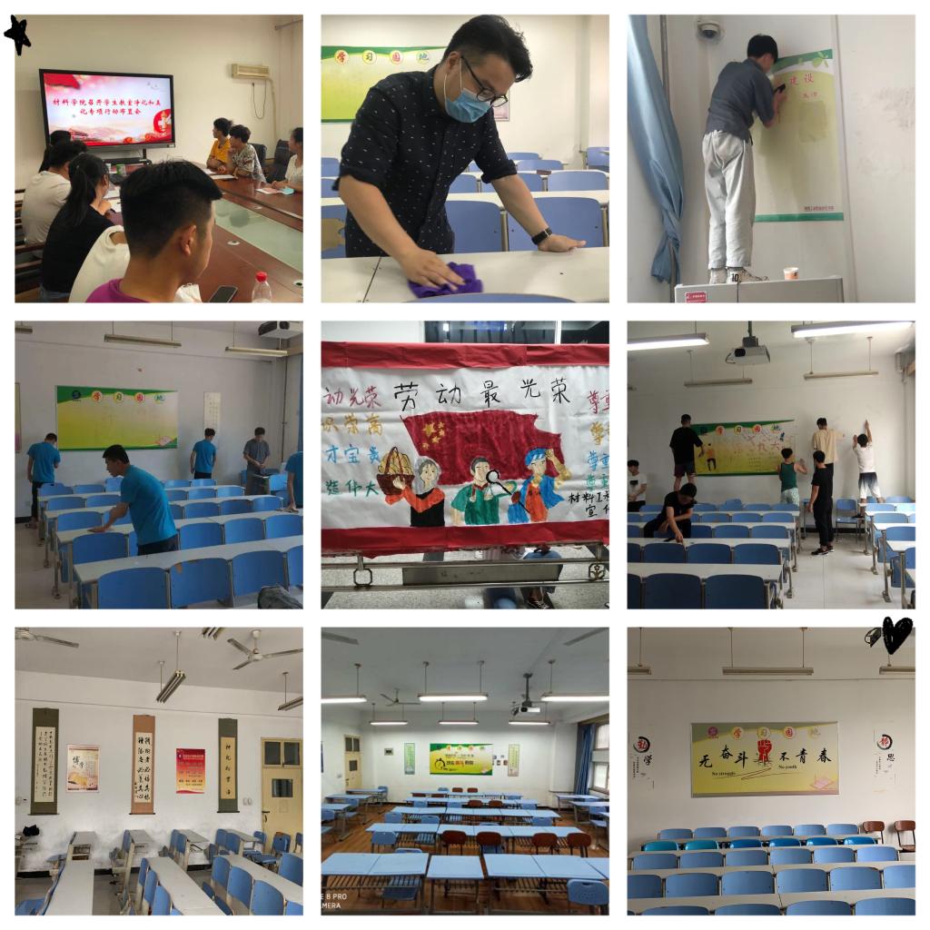 为贯彻落实《关于全面加强新时代大中小学劳动教育的意见》及学院《关于学生教室净化和美化专项行动及劳动实践活动的通知》要求,切实推进教室环境卫生综合整治工作,创建“净化、美化、文化”的育人环境、工作环境和学习环境,材料学院多方举措、持续推进系列劳动实践专项活动。