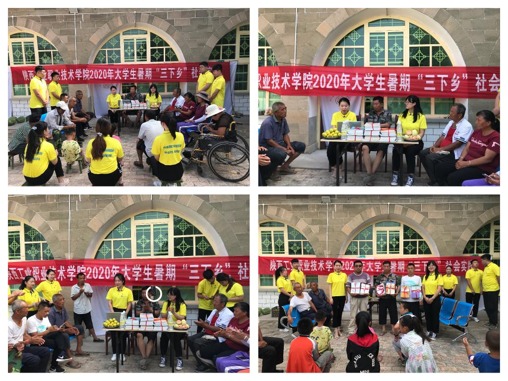 座谈会上,村支书刘文革向观察团介绍了田家塬村基本情况和脱贫攻坚的整体进展。薛媚老师就我院基本情况,并对我们的特色专业与社会作用进行了通俗易懂的介绍。观察团成员刘静涵分享了电商知识的含义、现状趋势以及电商直播成功案例三个方面的内容,并给村民们演示了如何进行电商直播。最后,薛媚老师和岳攀老师将电商书籍赠予田塬村村民,以便让村民们对电商更深入的了解,助力农村经济发展。