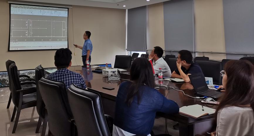 经过前后五轮论证,机械制造与自动化专业群实训建设方案已日益成熟。为了加快建设进度,8月21日,机械工程学院院长赵明威、产教融合研究院院长王建军一行赴新时代(西安)设计研究院有限公司开展实训基地设计方案研讨。新时代设计院建筑二所所长白旭涛、建筑设计师苏娜丽、预算造价工程师陈韵禾、给排水设计师袁星参会。